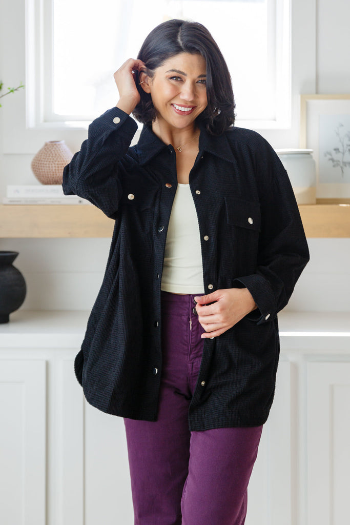 Stay stylish no matter what the weather brings in our Come Rain or Shine Button Down Top. Featuring a collared neckline, snap front, and chest pockets, this easy-to-layer top is crafted from soft, novelty corduroy fabric. Create a complete look with its matching wide leg pants: perfect for whatever the day brings!