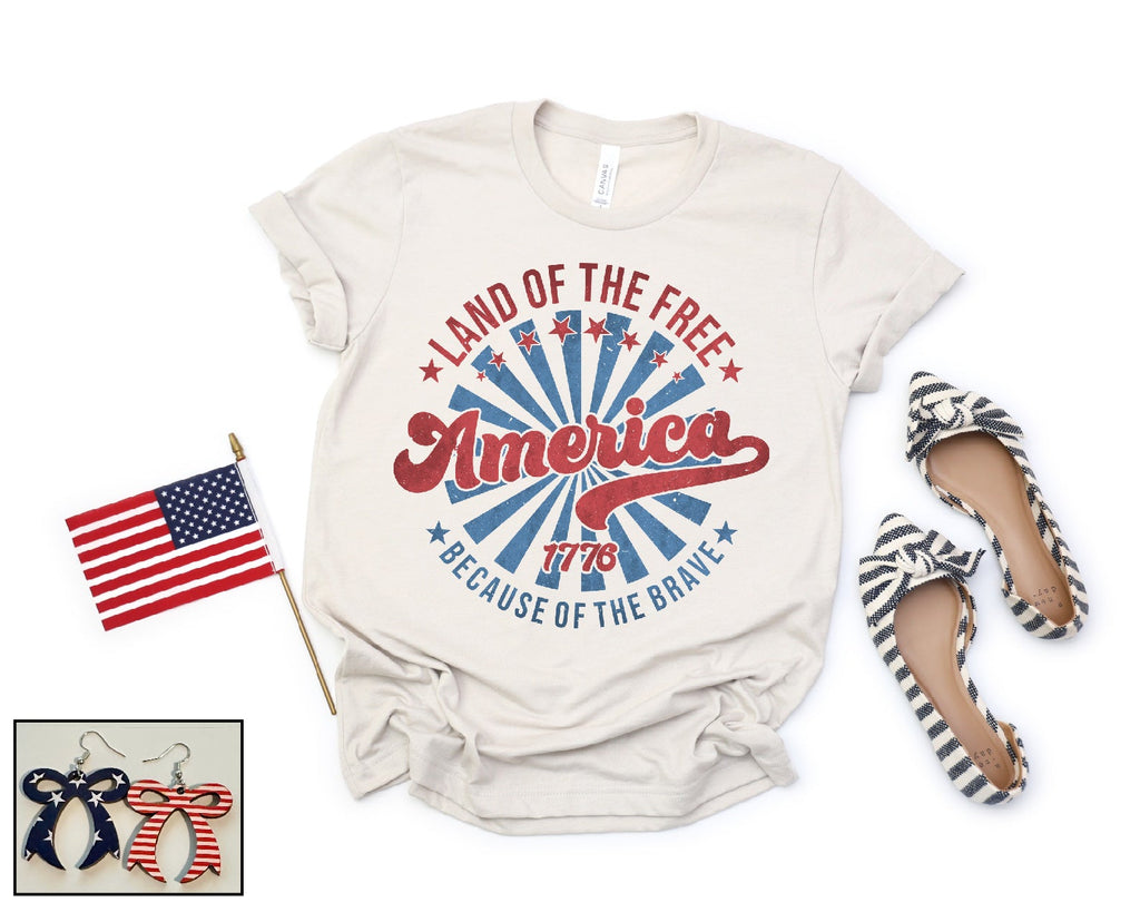 This tee pairs perfectly with our Blue Stars & Red Stripes Patriotic Bow Earring!