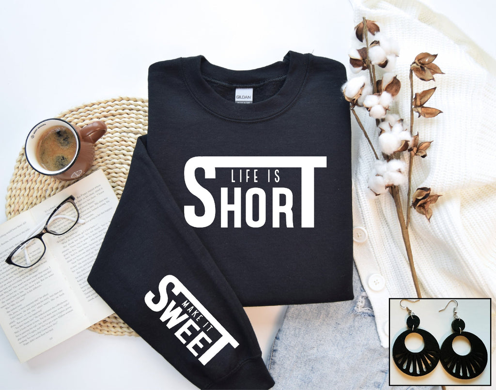 This design is direct to garment printed on a Black Sweatshirt (Tultex or Gildan brand). Sweatshirts are long sleeved with a rounded neckline & true to size with a unisex fit. Sweatshirts are 80% Cotton & 20% Polyester. Single Sleeve is DTF