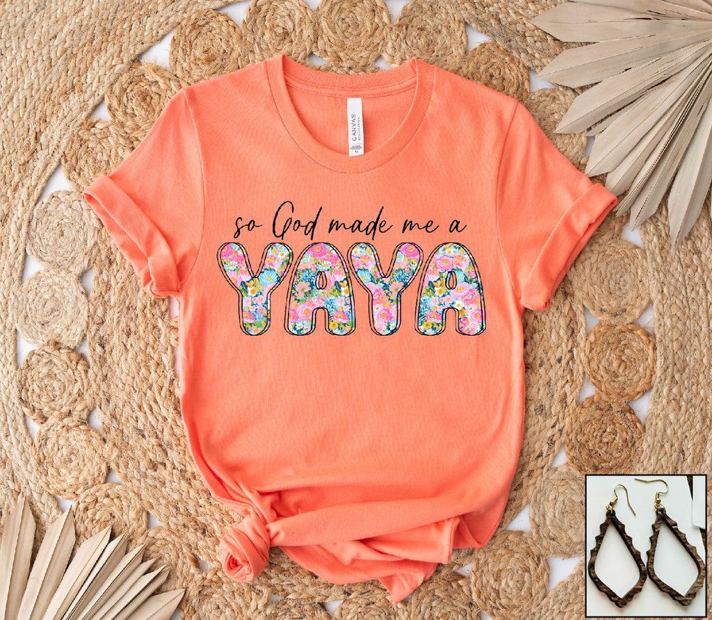 This tee pairs perfectly with our Brown Wood Scalloped Dangle!