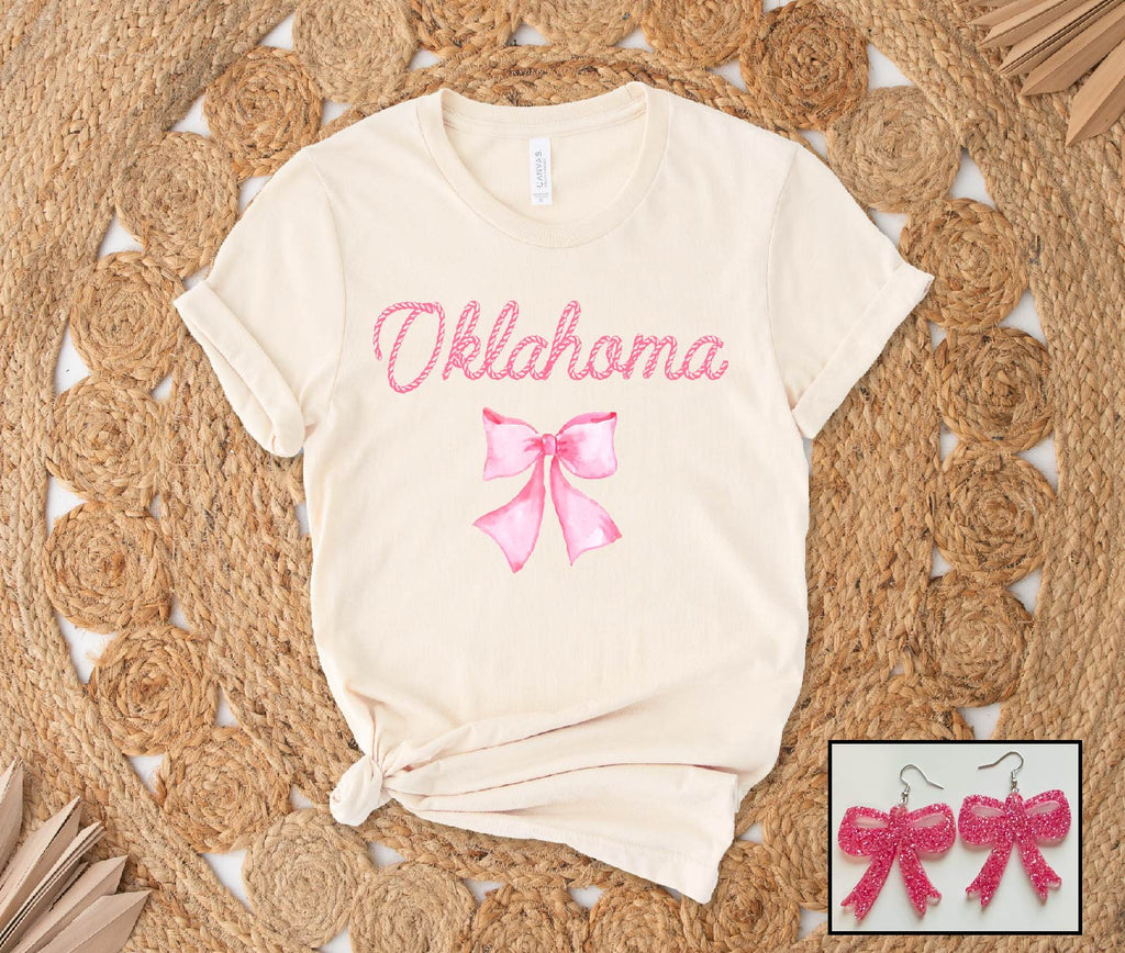 This tee pairs perfectly with our Pink Glitter Coquette Bow Earring!