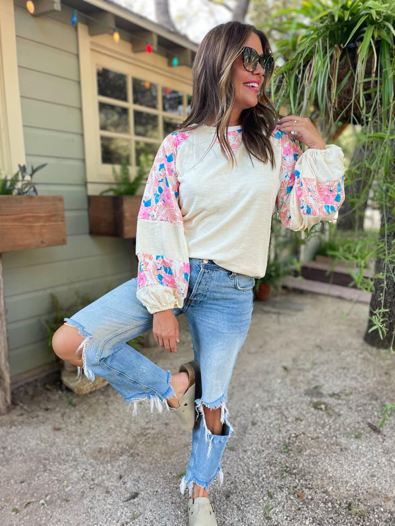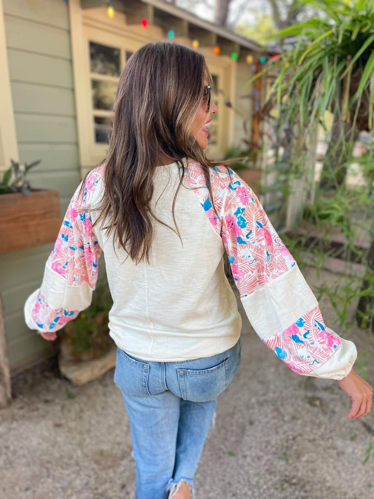 Our Tyler Top is available in two gorgeous color combinations! Crafted with a flowy balloon sleeve and a soft crinkle rib knit fabric, this top is an ideal mix of comfort and style. The floral pattern blocking adds just the right amount of detail and interest to this versatile piece!