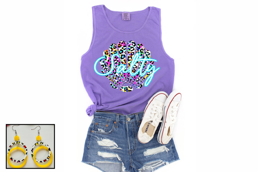 This tank pairs perfectly with our Neon Yellow & Neon Leopard Double Hoop Dangle!
