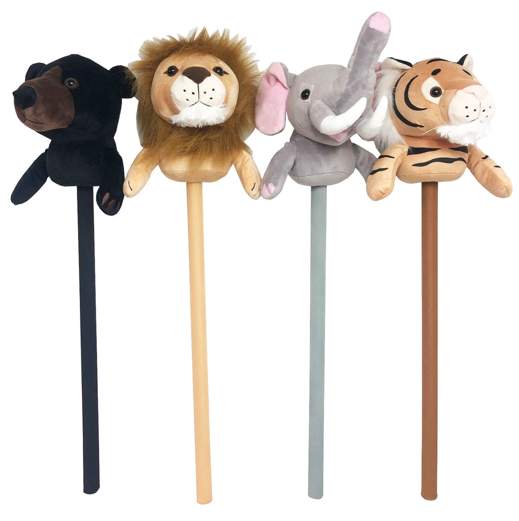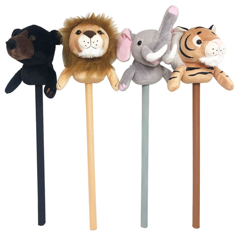 Take your imagination on a wild ride with an ASSORTED ANIMALS ON A STICK! This 30" set includes a Unicorn and four Plush Zoo Animals on sticks. Unleash your inner adventurer and explore the limitless boundaries of your playful imagination!