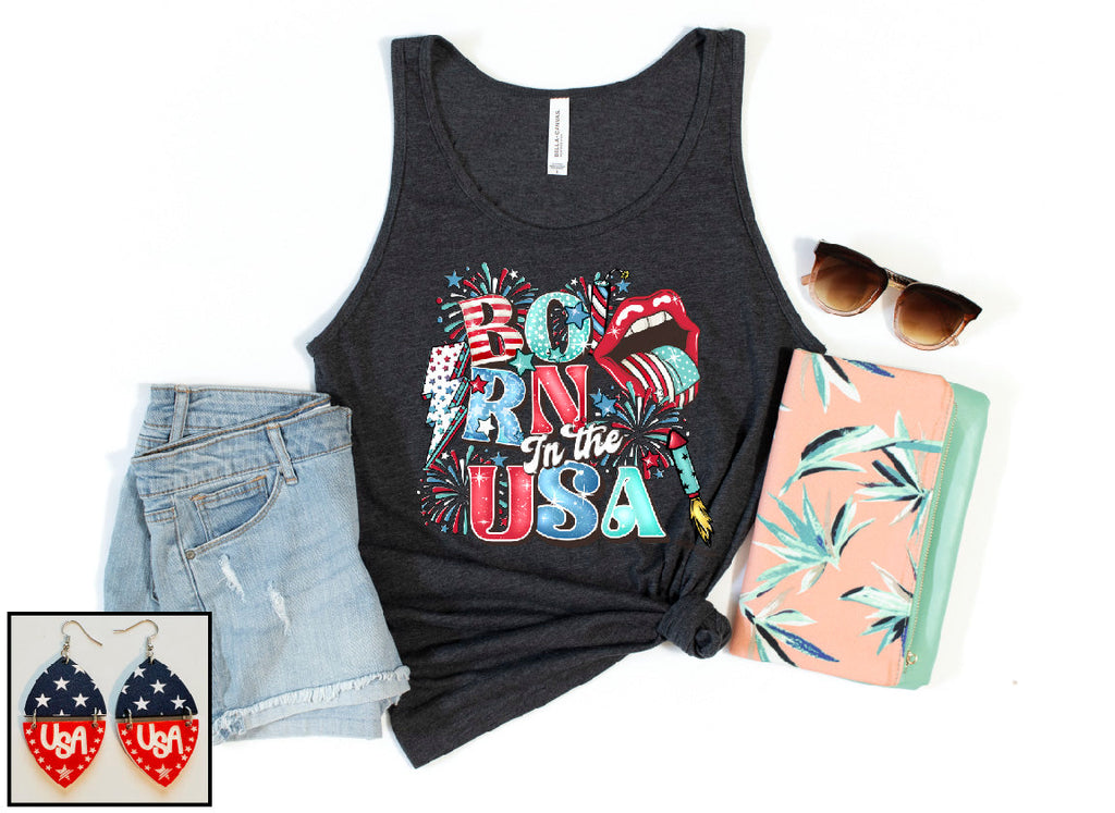 This design is direct to garment printed on a Heather Dark Grey tank (Bella Canvas brand). Tanks are sleeveless with a rounded neckline & are true to size with a unisex fit. Made up of a 60% Cotton & 40% Polyester blend.