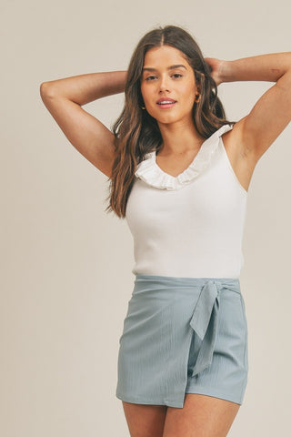 Description: + Ribbed knit tank bodice+ Tie back detail+ Model is 5' 9 33-25.5-36 and wears an S
