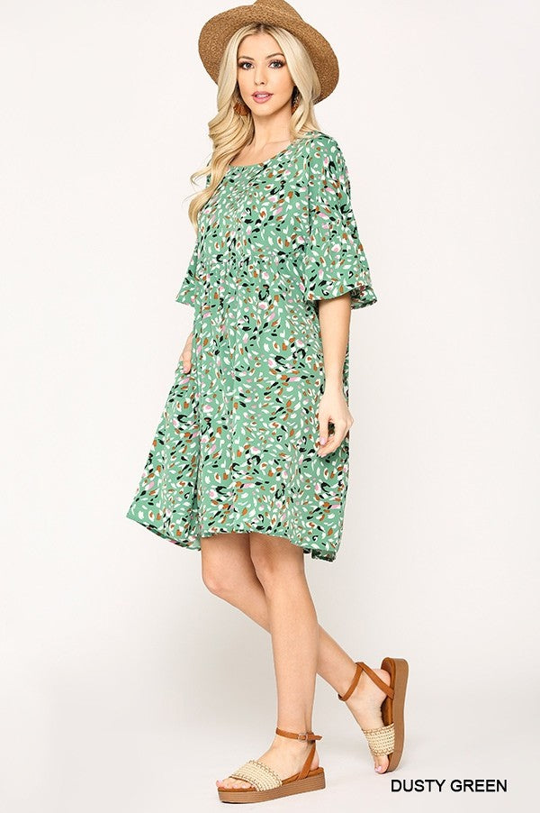 Multi Dot Print Flowy Loose Dress with Side Pockets and Keyhole