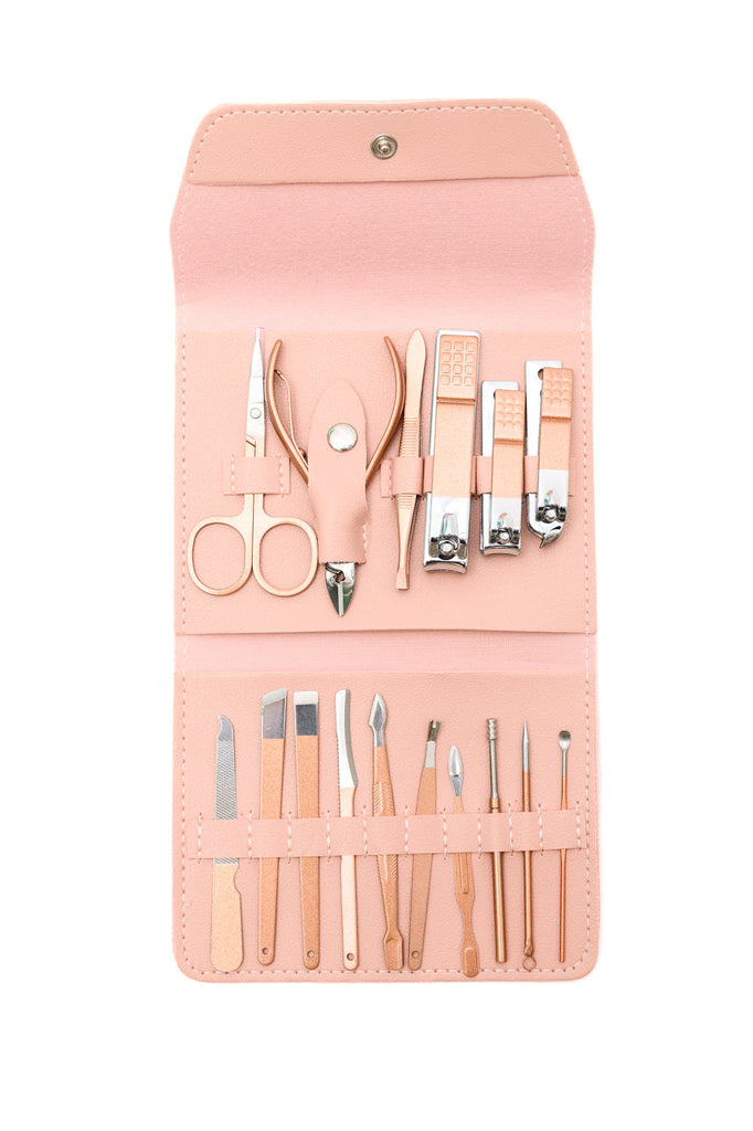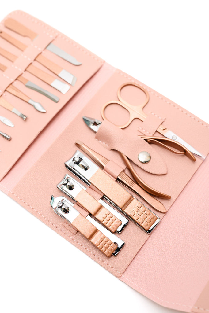 Our Flawless 16 pc Mani-Pedi Set - the ultimate companion for your DIY nail care adventures! This handy set comes tucked in a sleek faux leather case that's as chic as your freshly done nails. With 16 different tools at your fingertips, achieving the perfect manicure or pedicure from the comfort of your home has never been easier. Crafted from stainless steel, these instruments will effortlessly trim, shape, and beautify your nails, making you feel like a professional nail artist. Happy pampering!