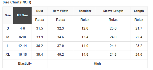US Size Range. Small 0-4, Medium 6-8, Large 10-12, XL 14-16, 2X 18-20