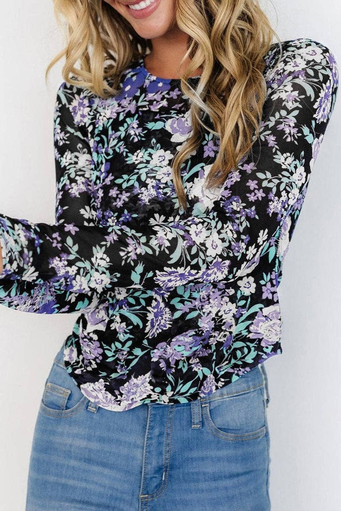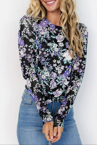 Expertly designed for style and comfort, our top offers a feminine touch with its elegant floral print pattern. The breathable mesh fabric ensures comfort and a flattering fitted silhouette accentuates your curves. Perfect for year-round wear with its versatile long sleeves. Polyester/Spandex