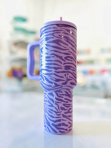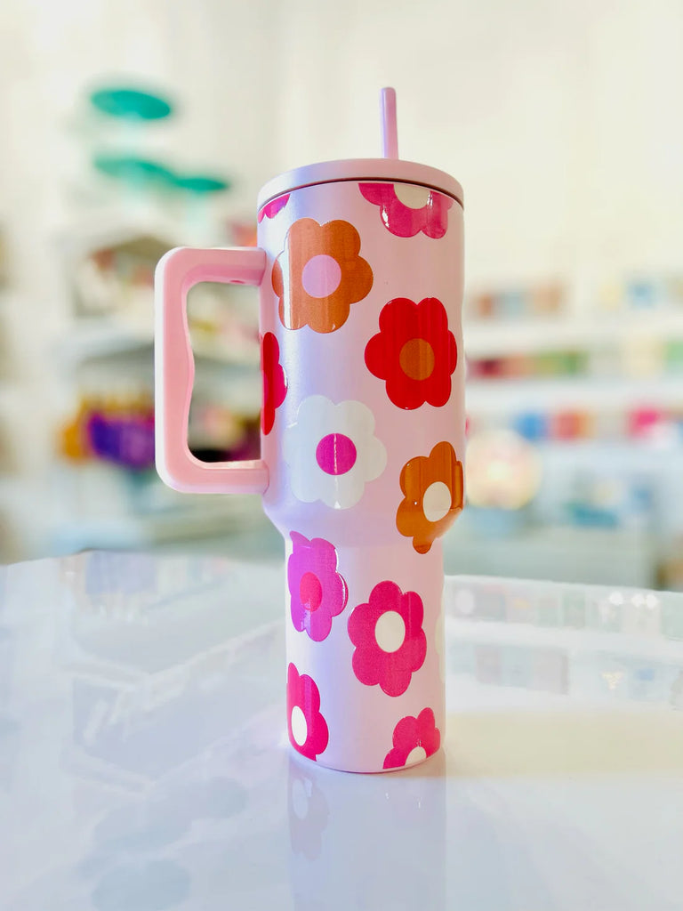 These 40 Oz babes feature a sleek, spill proof design, made of stainless steel. Slim bottom guarantees it'll fit in any cup holder! Comes with reusable straw.