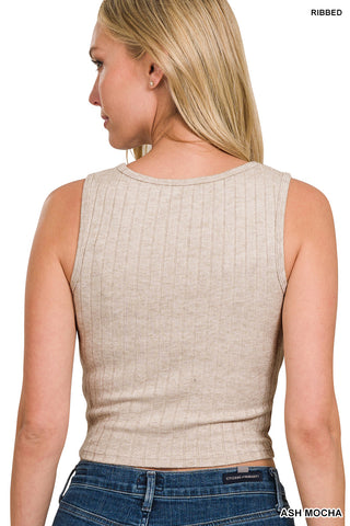 RIBBED SQUARE NECK CROPPED SLEEVELESS TOP