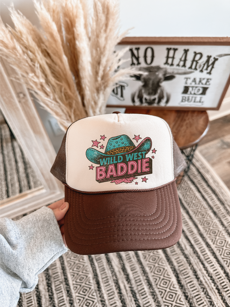 Wild West Baddie DTF Printed Brown and Tan Trucker Hat